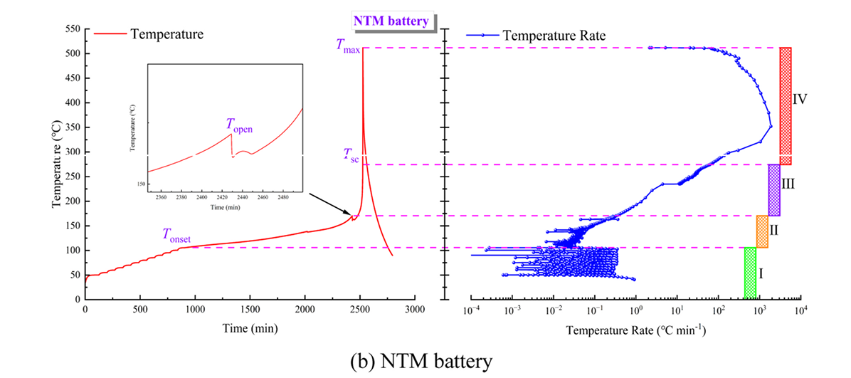 本研究使用仰儀科技小型電池絕熱量熱儀BAC-90A,對三種18650電池(以NaxTMO2[NTM]為陰極的鈉離子電池和兩種以LiFePO4[LFP]、LiNi0.5Co0.2Mn0.3O2[NCM]為陰極的鋰離子電池)的熱失控特性及危險性進(jìn)行了研究對比分析。