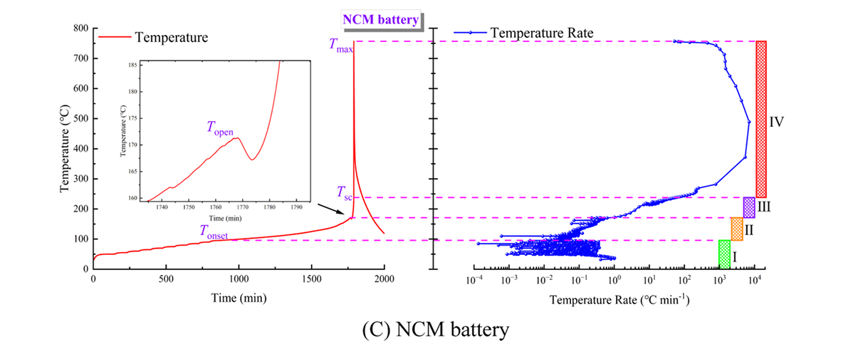 三種電池的熱失控評估模型表明,熱危險性順序為NCM電池>NTM電池>LFP電池。