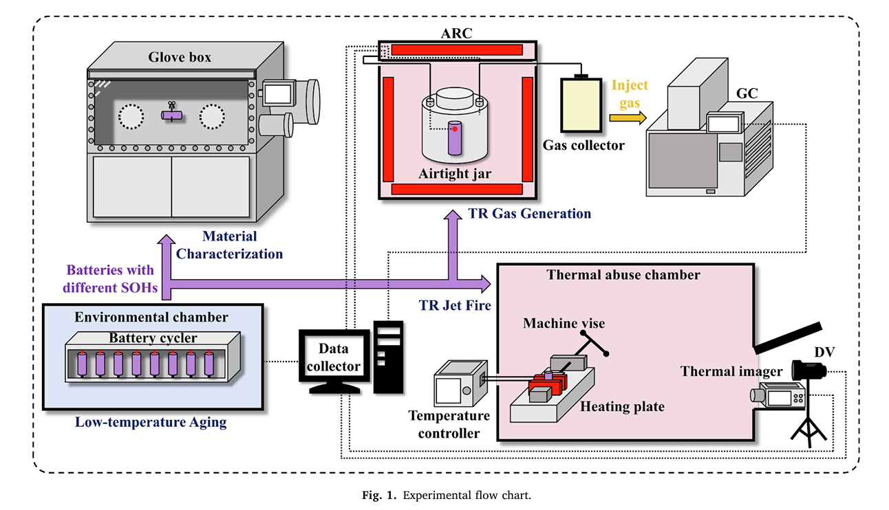 本研究借助仰儀科技BAC-90A小型電池絕熱量熱儀,結(jié)合氣相色譜分析等技術(shù)手段,深入探究18650型NCA鋰離子電池在低溫循環(huán)條件下的老化機(jī)制與熱失控特性的內(nèi)在關(guān)聯(lián),重點(diǎn)分析低溫循環(huán)老化對電池?zé)崾Э禺a(chǎn)氣成分、爆炸風(fēng)險(xiǎn)及噴射火行為的影響規(guī)律,為提升鋰離子電池低溫環(huán)境下的安全性提供了理論依據(jù)。