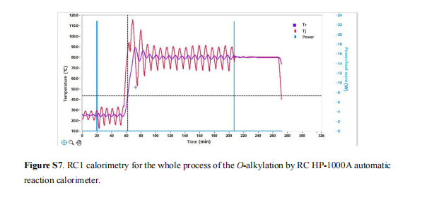 本研究借助仰儀科技RC HP-1000A自動(dòng)反應(yīng)量熱儀等設(shè)備,重點(diǎn)針對GL-V9合成過程中的Elbs氧化與O-烷基化兩個(gè)關(guān)鍵步驟開展安全評(píng)估,有效解決了這兩個(gè)步驟的熱穩(wěn)定性驗(yàn)證、潛在危害識(shí)別及風(fēng)險(xiǎn)管控問題,保障了整個(gè)合成路線的安全性與可放大性。